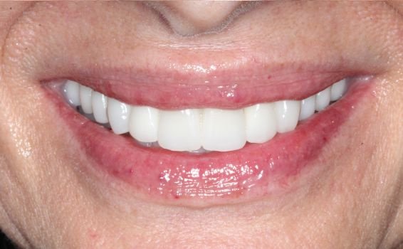 Lorsqu’une réhabilitation complète est nécessaire, le traitement repose généralement sur 6 à 8 implants par mâchoire, sur lesquels est fixé un bridge complet en céramique.
